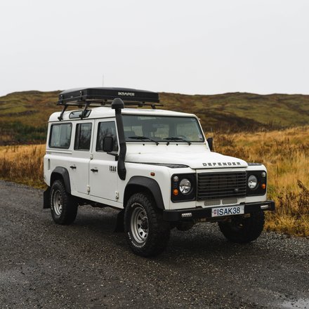 The Land Rover Defender is the preferred choice for most leisure tours and 4x4 driving in Iceland. All our Defenders have a manual 6 gear transmission and are fitted on 31" - 32" tyres which are slightly larger and wider than the original Defender tyres. This gives you more traction, a smoother ride and more stability on the road. Each vehicle comes with a shovel, a pulling rope, jack and tire iron in an onboard tool bag.