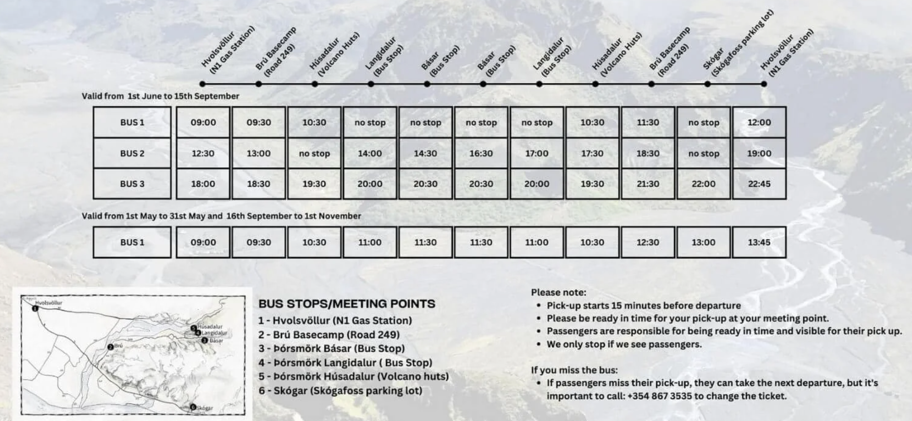 Option 1 if you are taking the bus from Hvolsvöllur or Brú Base